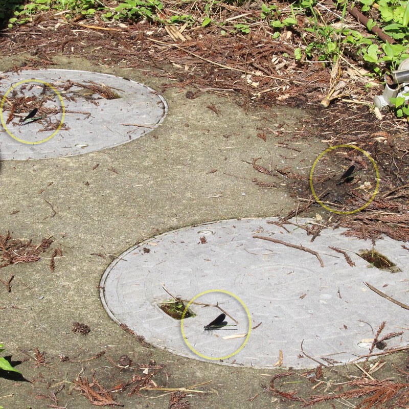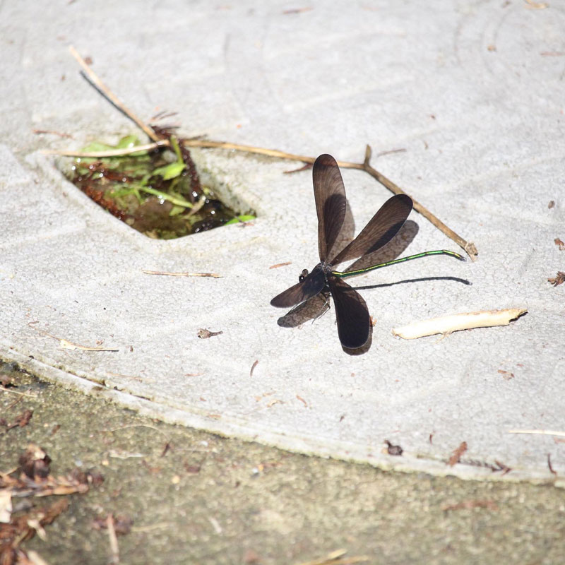 家の浄化槽の上のハグロトンボ。