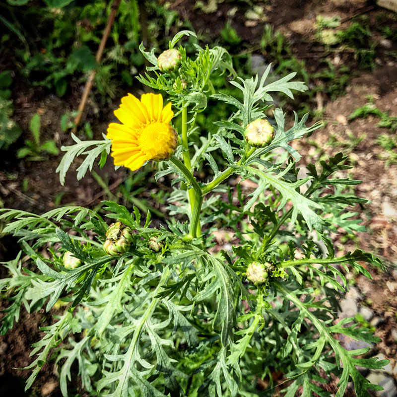 花を見るために一本だけ残しておいた春菊に咲いた花。