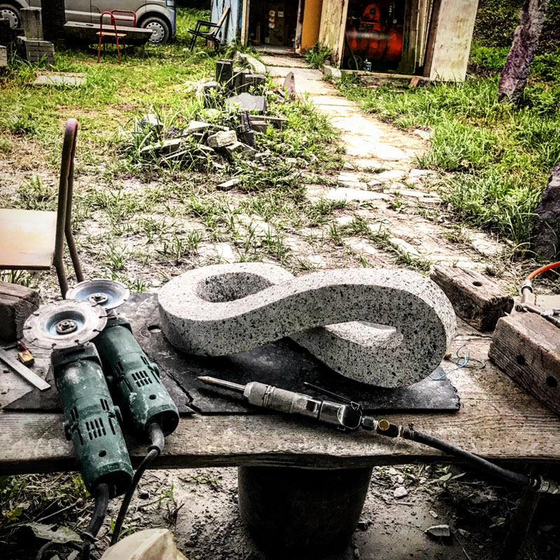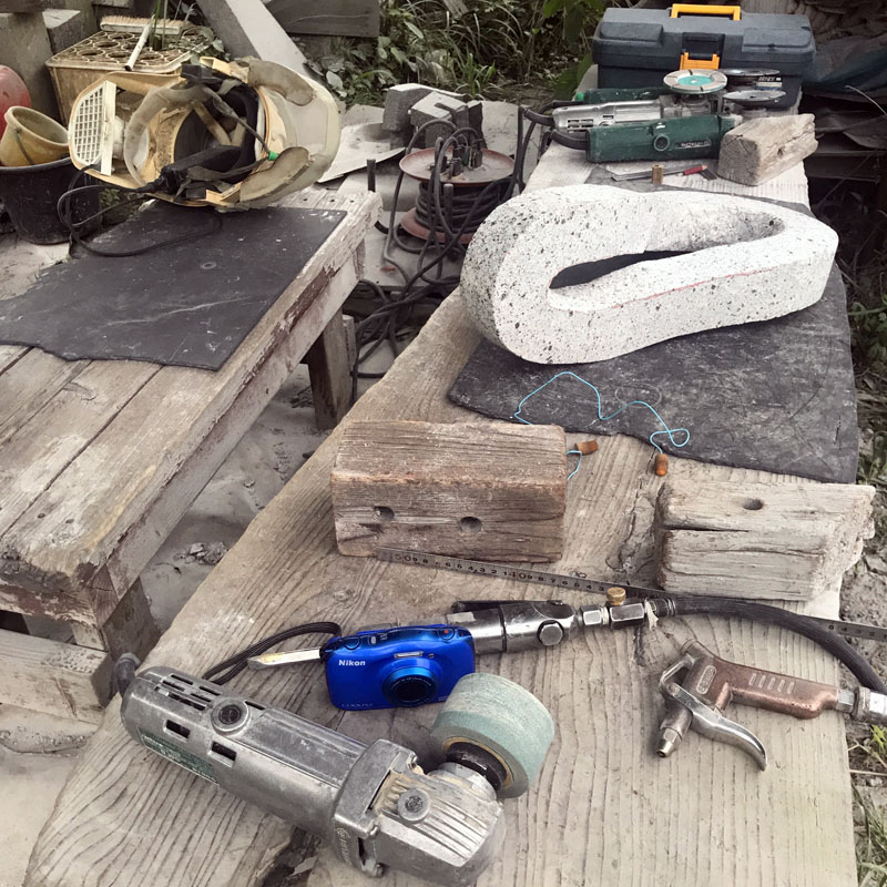 制作中の石。