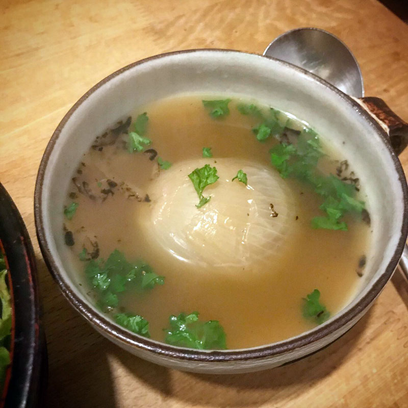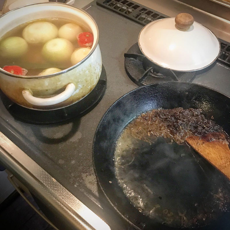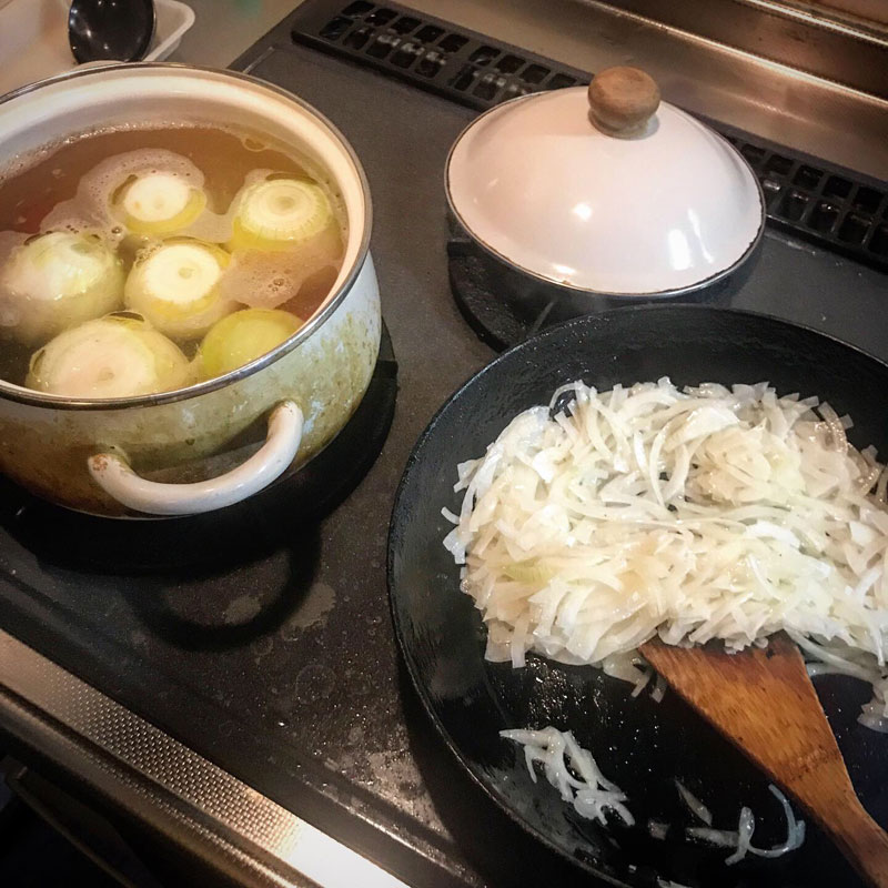 玉ねぎのスープは毎日火を入れていたので壊さずにすくうのが大変なほどの柔らかさ。とろけて一番美味しくなった頃に終わってしまうんだよなぁ。