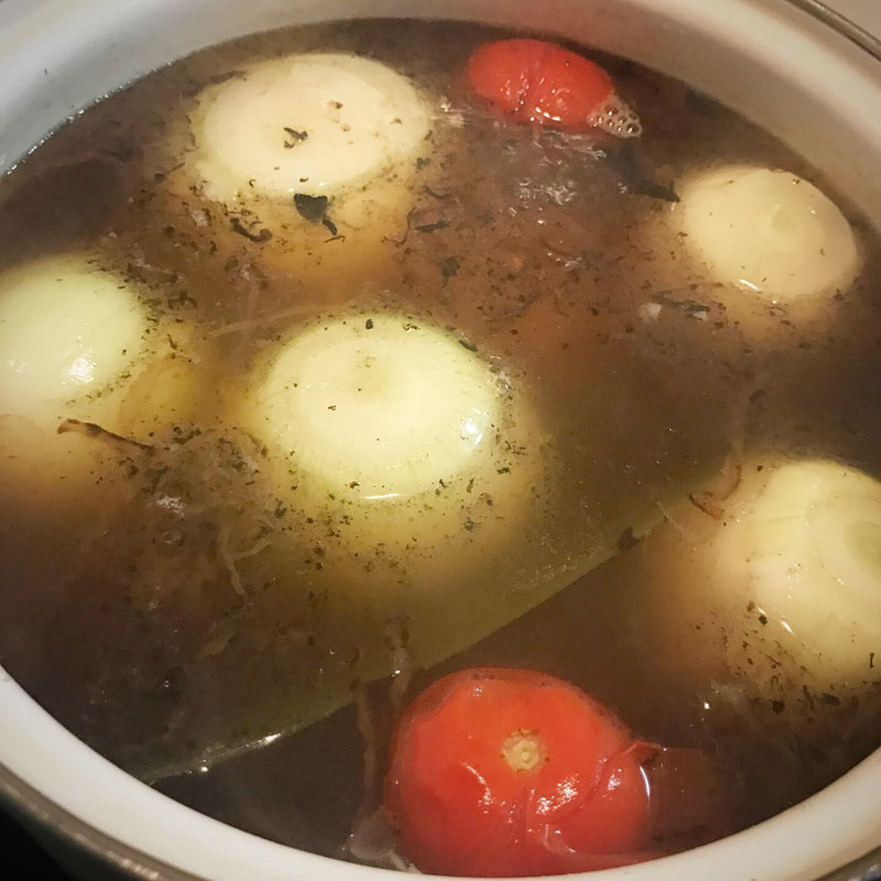 昆布や梅干し、コンソメに岩塩でスープをコトコト煮てる間に、