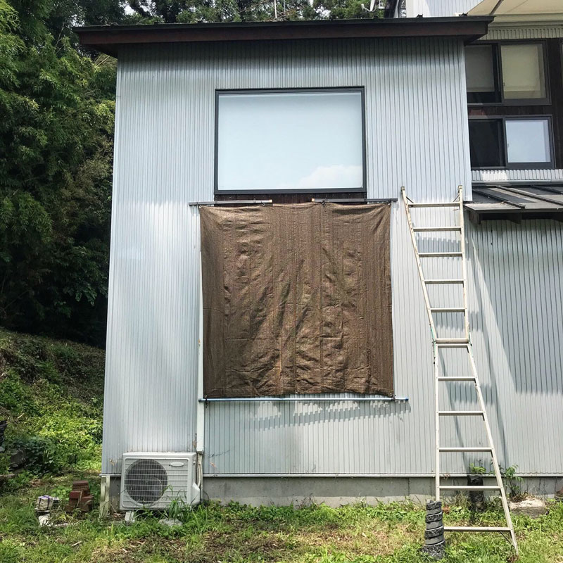 昼飯に戻った際、カミさんに頼まれていた音楽教室の大窓に日よけのシェード取り付けた。