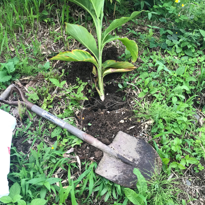 午後の仕事へいく前に、カミさんがもらってきたカラーを家の土手に植える。