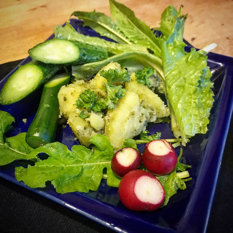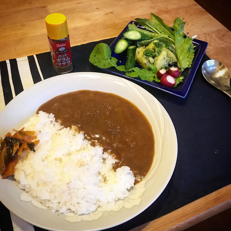 木曜日はカレー曜日。畑の野菜と共にサラダで。