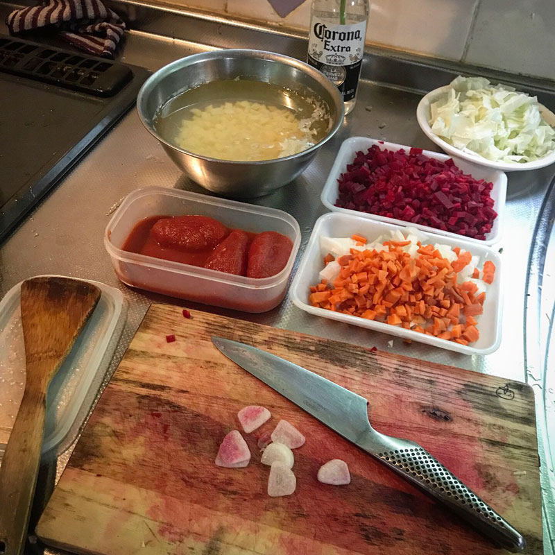 ビーツと野菜を切って煮るだけなのにこんなに美味しくなるんだからな〜