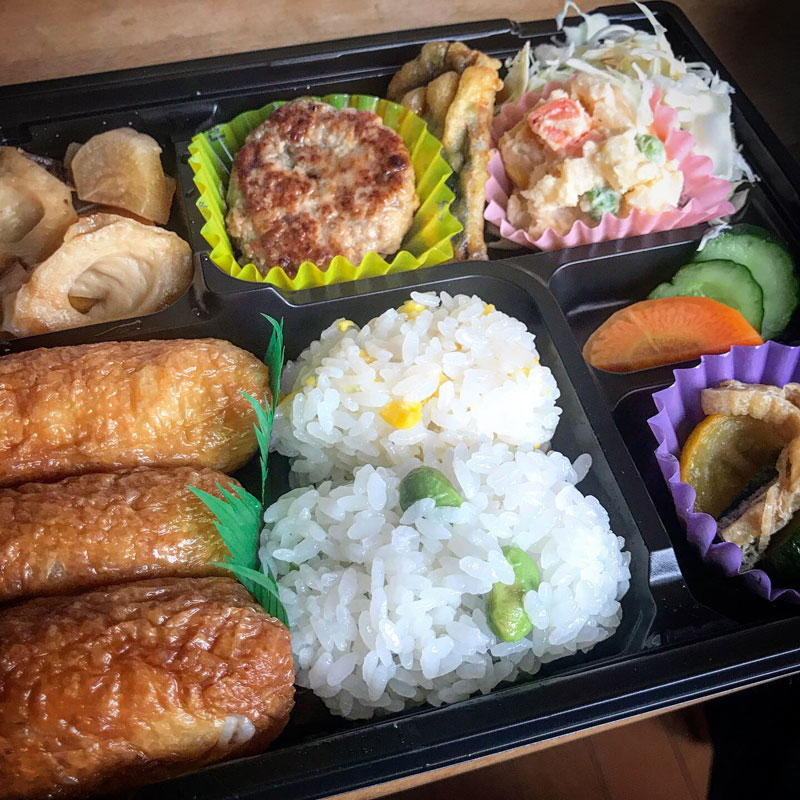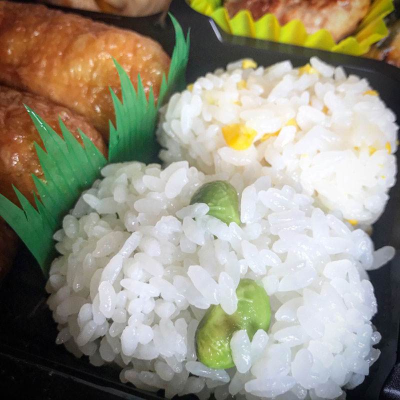 おいなりさん、とうもろこしご飯、秘伝豆ご飯が嬉しい。