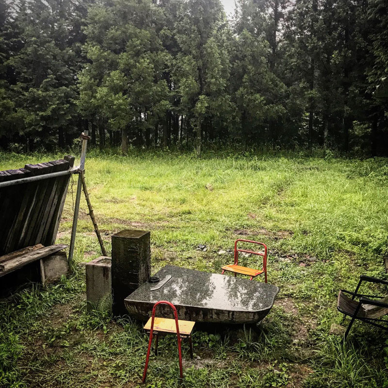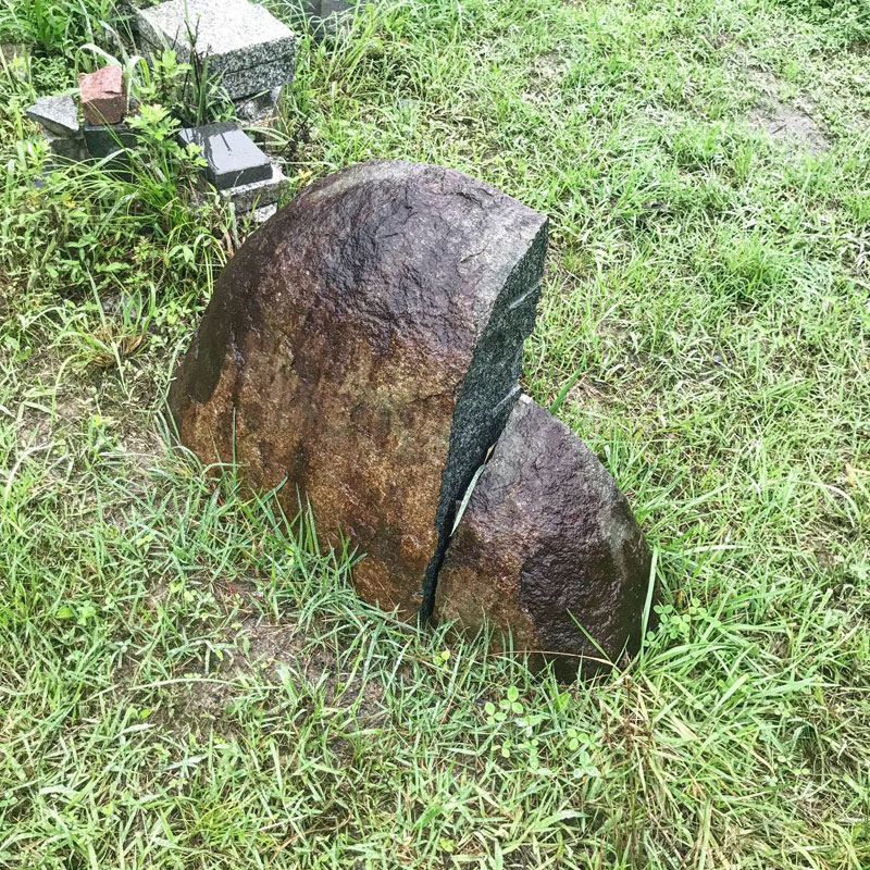 作品完成したのでまた新しい作品に取りかかるために在庫の石の塊からテントの下まで持っていかれる大きさに割りたいんだけど