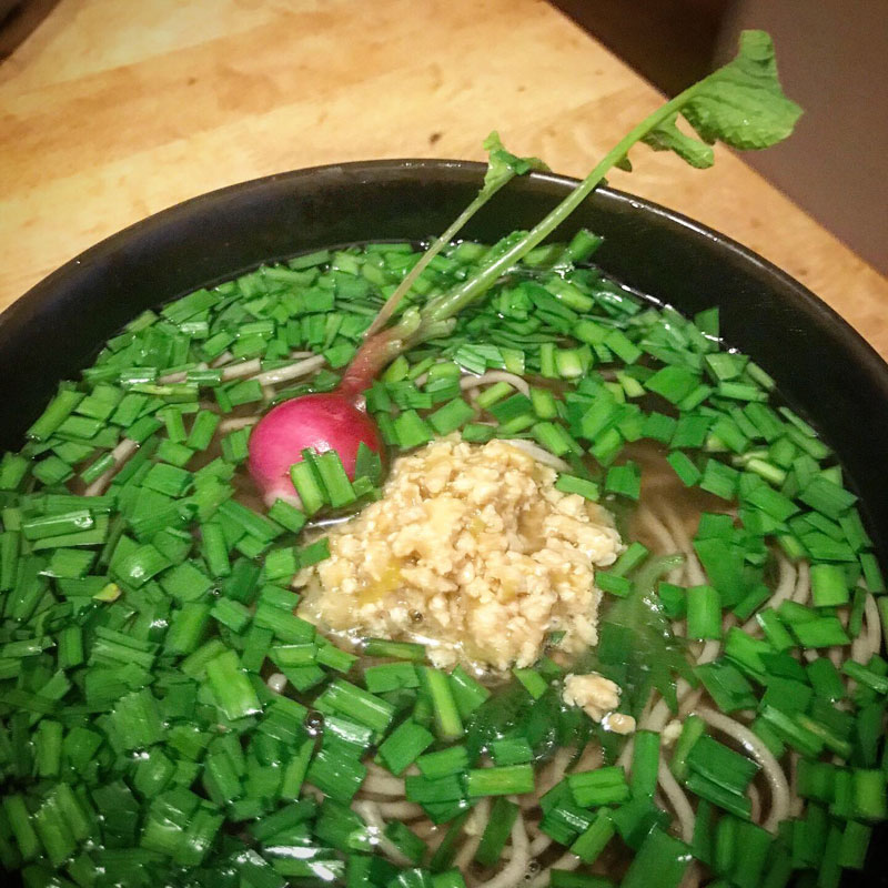 畑のニラが刈っても出てきてくれるので、またニラ肉味噌蕎麦。飽きない。刈っても生えてくる間は食べ続けそう。
