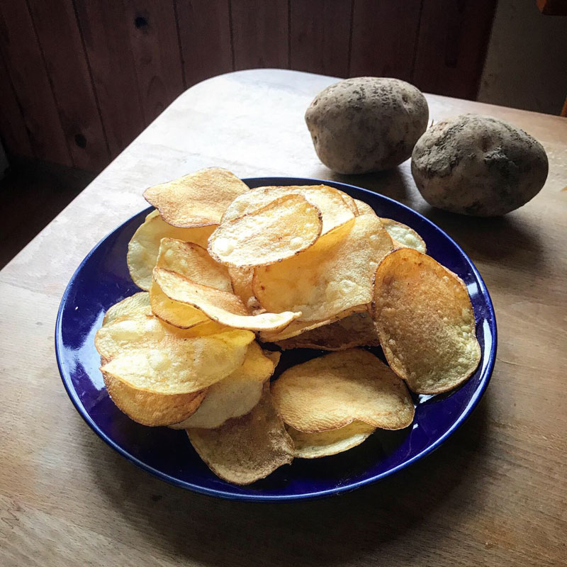 いただいた新じゃがで皮付きのポテトチップス作った。