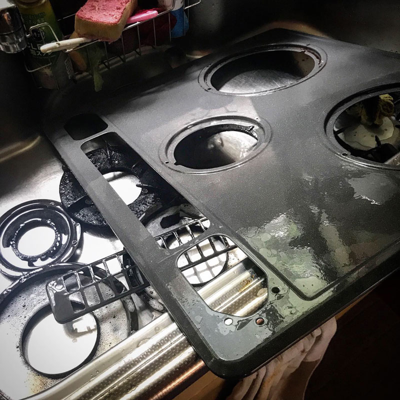 ガスレンジの台を外し五徳から何から大掃除。油落とし。朝起きられず、一日中変な冷や汗が出てる。
