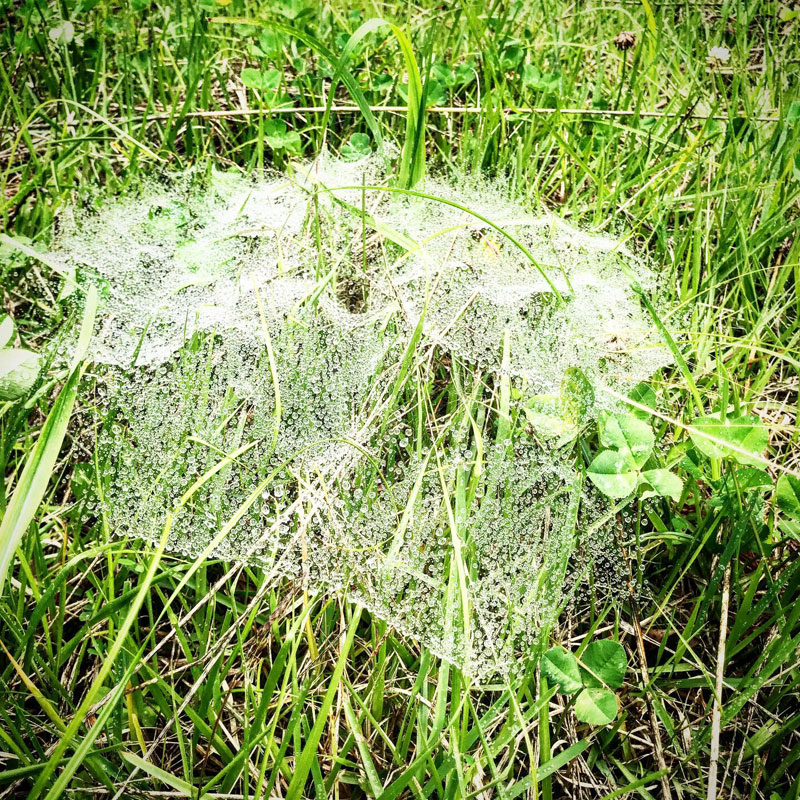 雨に濡れた蜘蛛の巣。