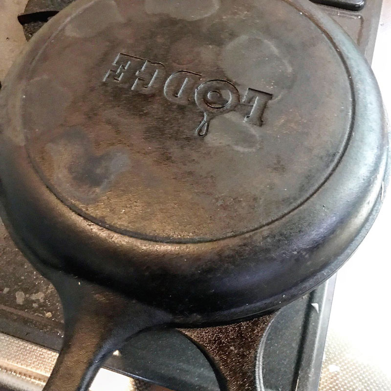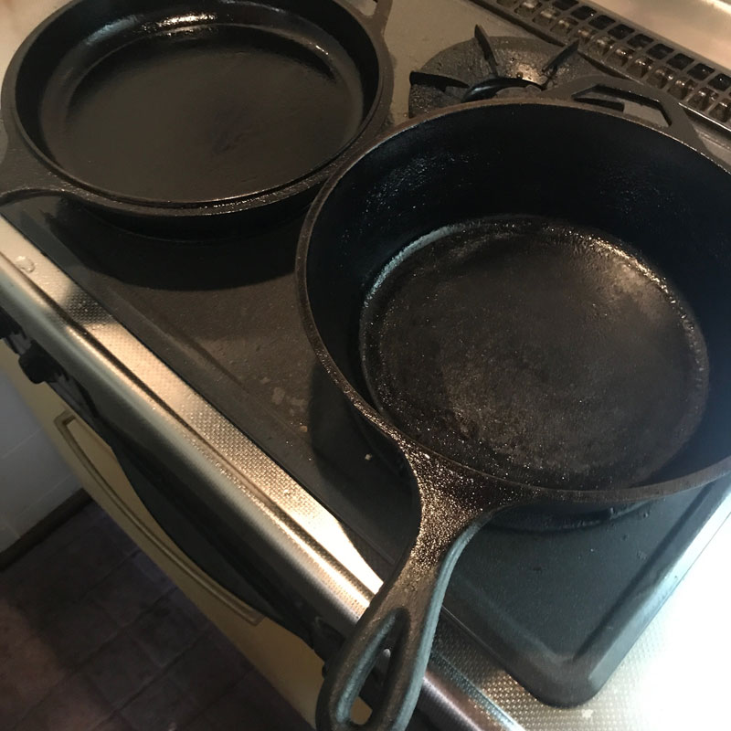 午後の仕事に出かける前にスキレットが冷めたのでシーズニングだけしておかないと。鉄の鍋なので焼いてオリーブオイルを塗っておかないと錆びてしまう。