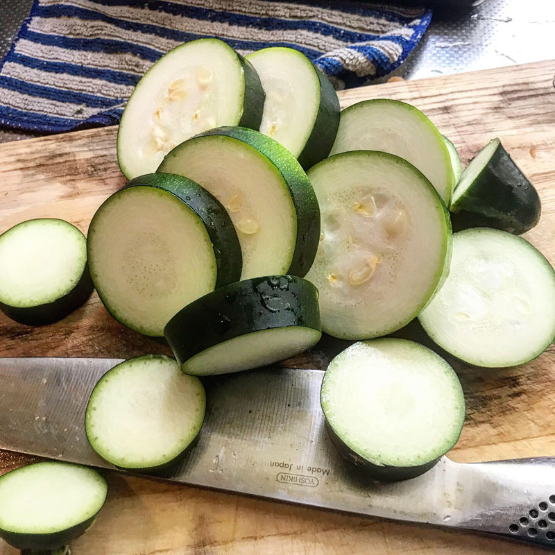 バジルが一枝昨日の雨で倒れてしまっていたので丸ごと香り付けに投入。