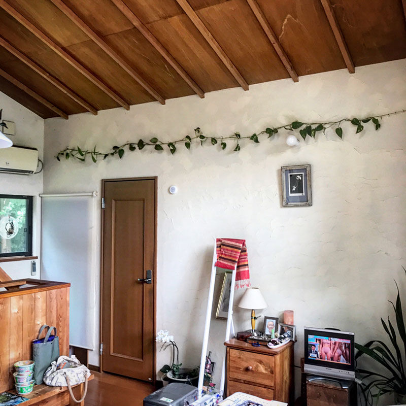 一度枯れてしまったポトス。再び居間の壁を横断するまで伸びてくれた。やっとだよ!