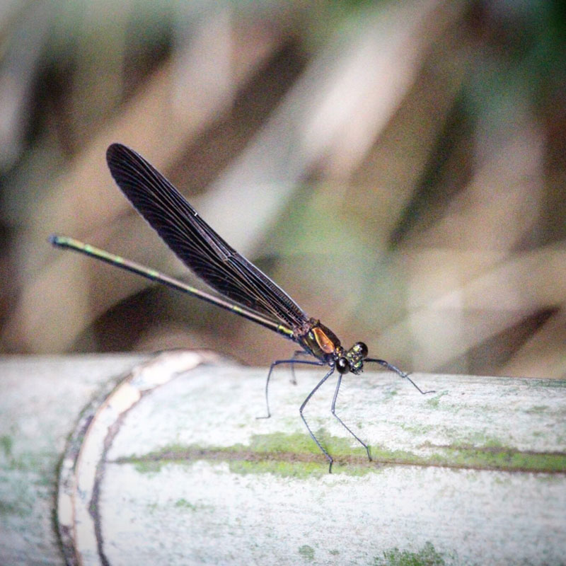 どこで雨をしのいでいたんだろう。晴れたら家の裏で8匹のハグロトンボが日向ぼっこしてる。