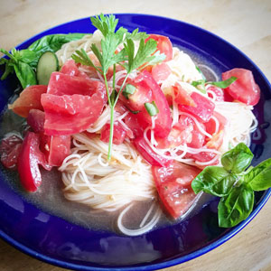 トマトの冷製パスタ 朝のガスパチョ。 畑から小指の大きさにもならない小さな小さなきゅうりを採ってきて輪切りにするとトッピングに最高。 朝、すり鉢でニンニクひとかけをとろりとすって、ザク切りのトマトとオリーブオイルと塩で和えて冷やしておく。 […] もっと読む » 2019年8月20日 | コメントはまだありません | カテゴリー: おいしい