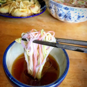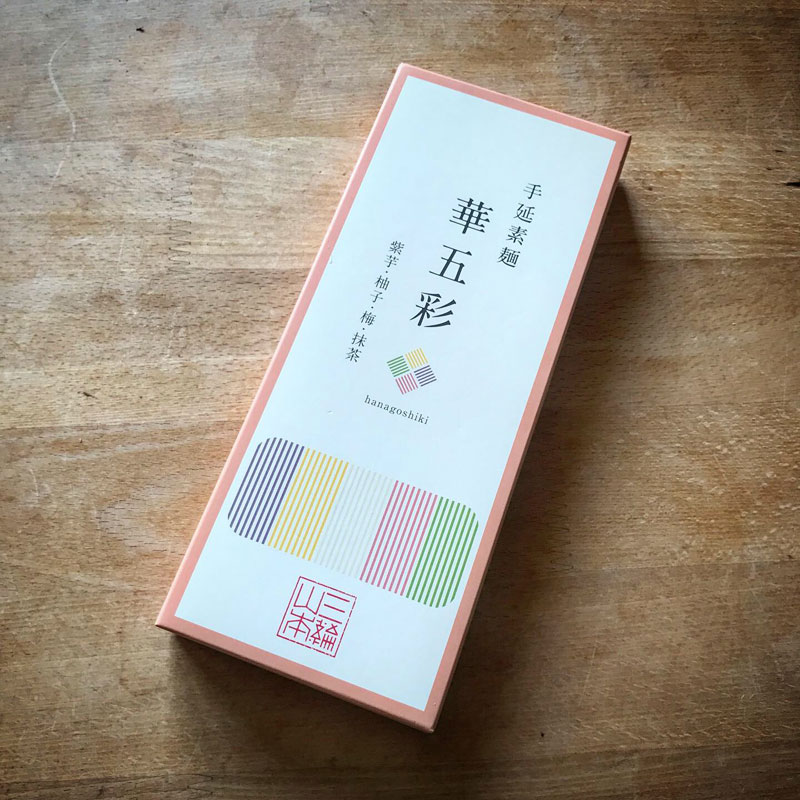 紫芋、柚子、梅、抹茶、そして小麦の白の五色。