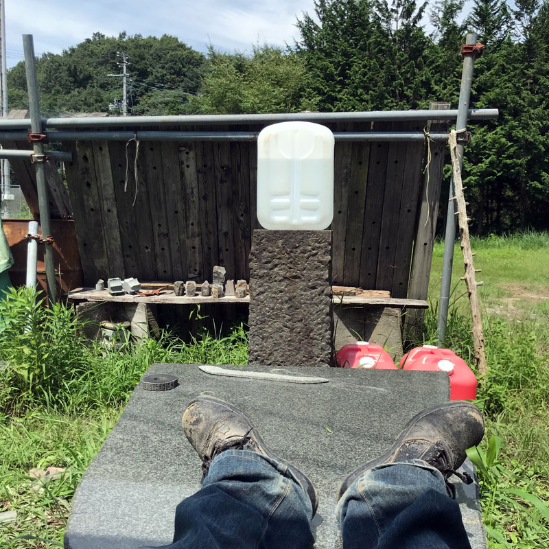 時々発症する腰痛の原因はわかってる。重たい石を無理して持ったか無理な体勢で石を彫り続けたか、真っ直ぐ立ち続けたか、だ。姿勢の良い人には信じられないだろうけど姿勢が悪いと真っ直ぐ立ち続けると腰、やられるんだよ。三越で初めての展示会に出展した初日、一日中立って接客していたら夕方、歩けないくらいにひどい腰痛になった。まだ腰の痛みが続くけど安静にしてるばかりじゃ能がないのでリハビリを兼ねて仕事場に。