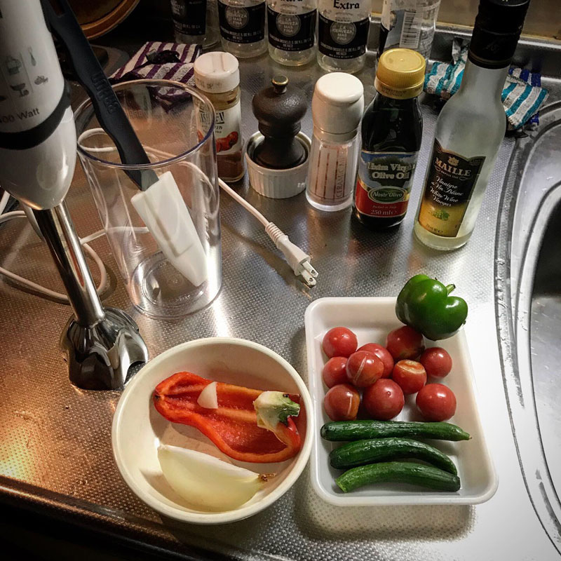 ハンドブレンダーがあればコップ一杯分のガスパチョ作るのもお手軽。