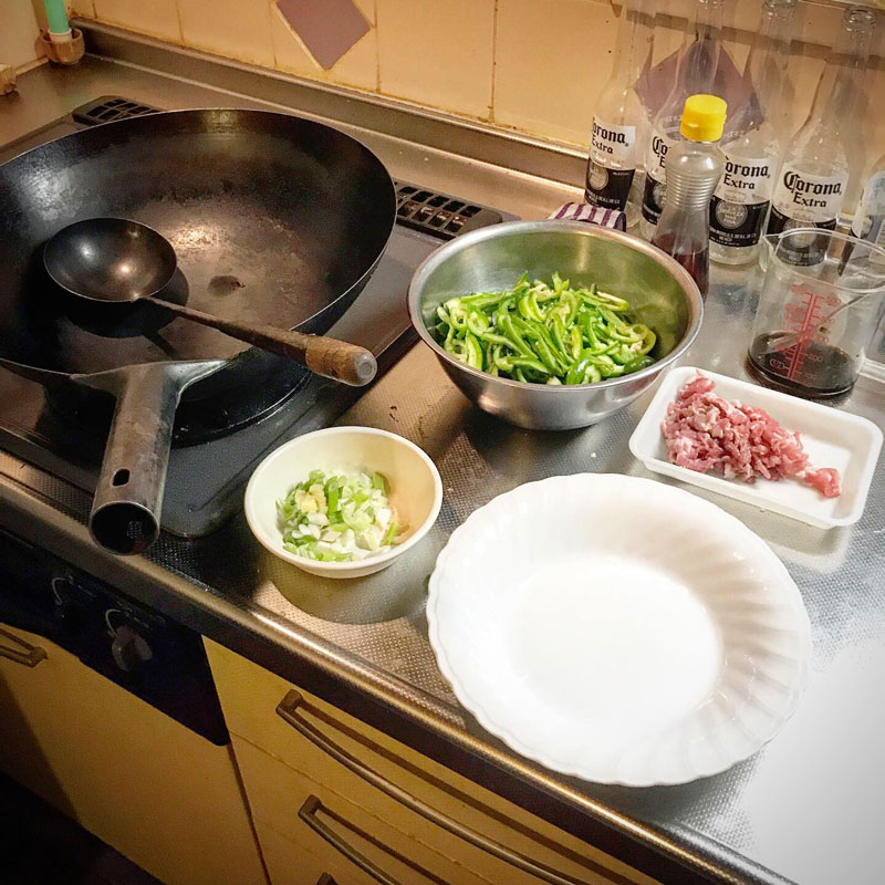 食べるのが追いつかない畑のピーマンを一気に全部使って青椒肉絲に。