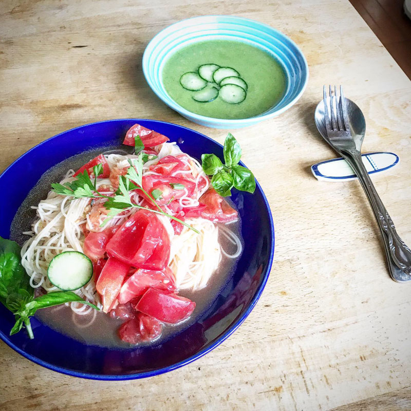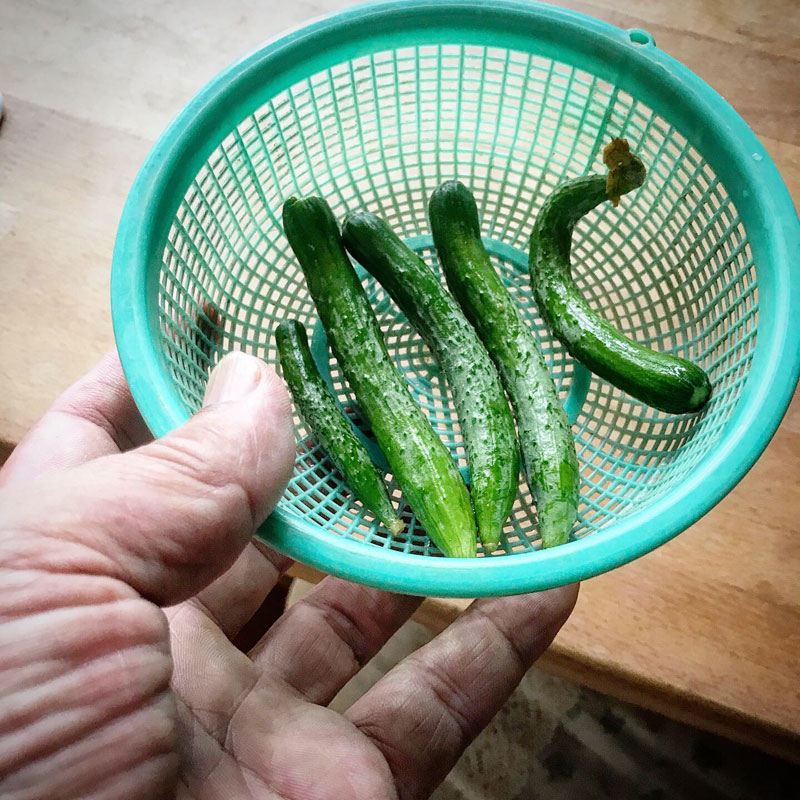 畑から小指の大きさにもならない小さな小さなきゅうりを採ってきて輪切りにするとトッピングに最高。