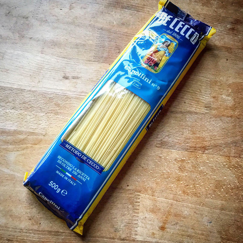 iMacで作業。昼までにプレゼンを提出できた。さて昼飯にディチェコのカッペリーニ no,9を2分茹でて