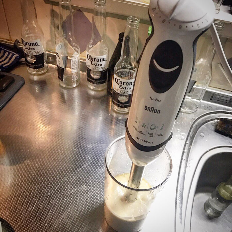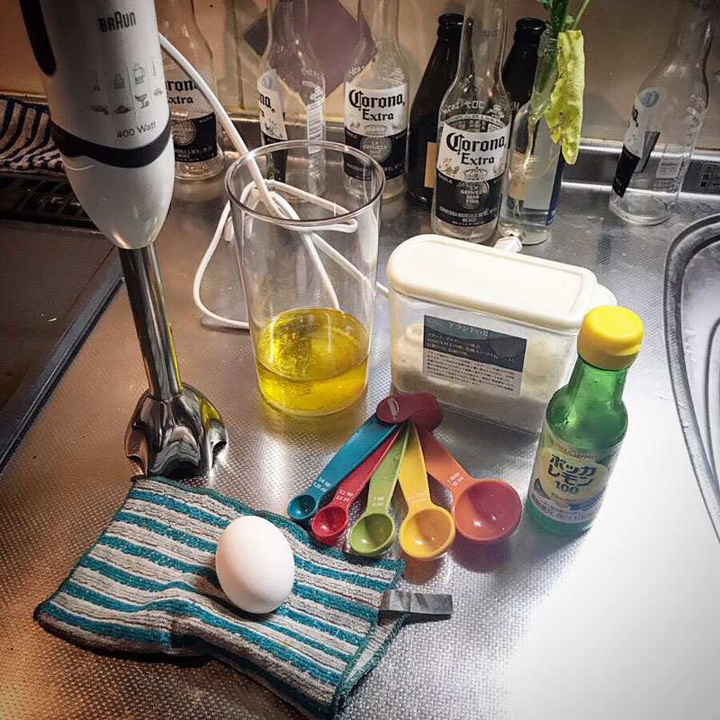 とりあえずブレンダーの基本、マヨネーズ作ってみる。ターボボタン付きでなかなかパワフル。速度調整もかなりきめ細かく出来る。