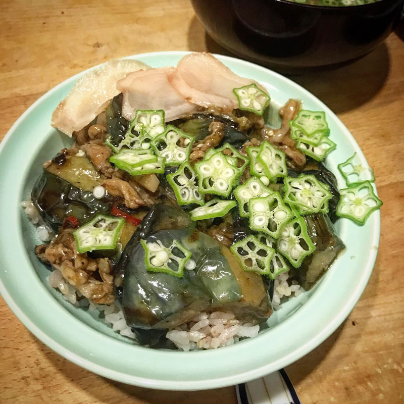 昨晩の麻婆茄子をご飯に乗せて丼に。