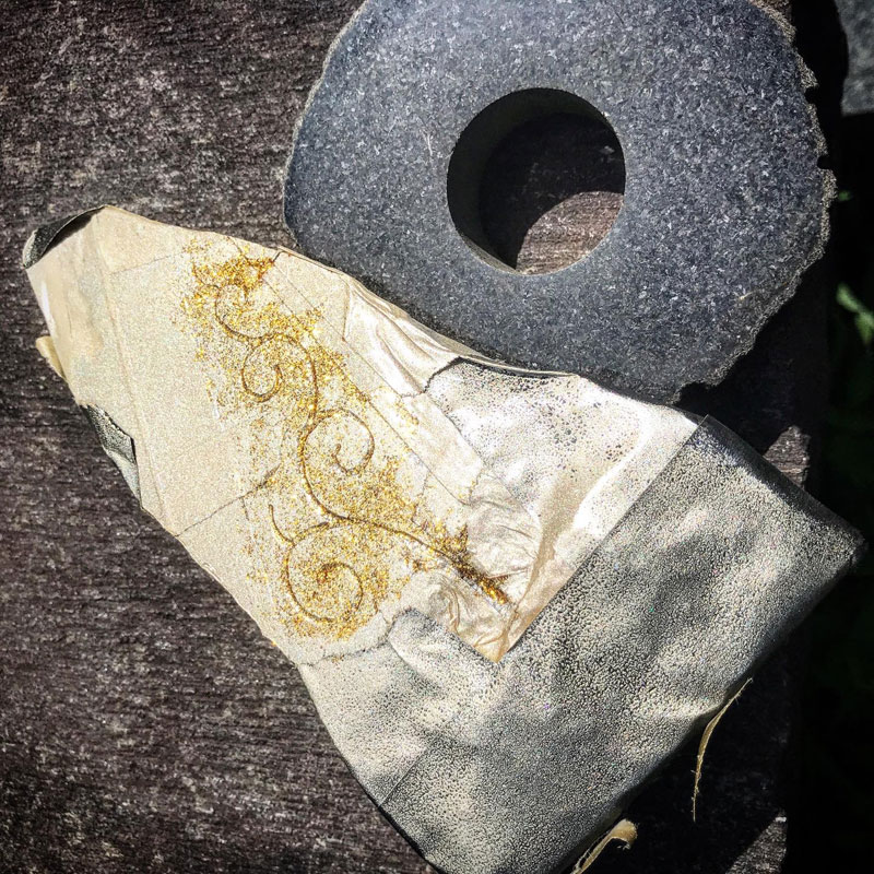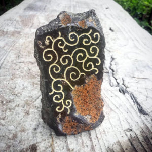 伊達冠石のカケラを磨いてルーターで描いたよ。