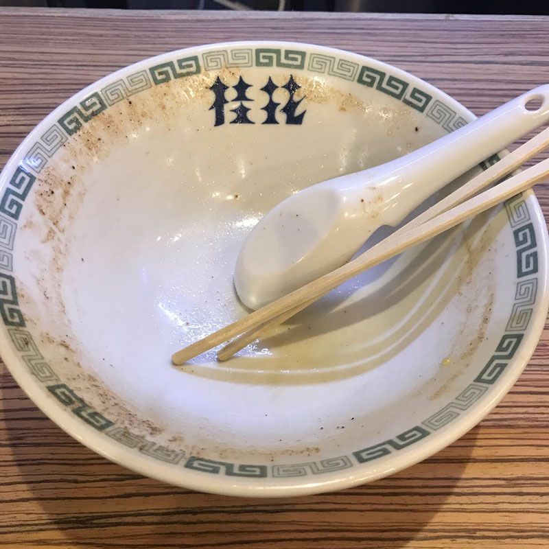 桂花拉麺 750円。この歳で初めて出会っていたら好きにならなかったかも。脂ぎったしょっぱいスープ、固いストレート麺、半熟じゃないゆで卵。でも僕のソウルラーメンだからね。一口食べると、そうそうこれだー!って舌が無条件に喜ぶ。この夏も食べられました・幸 うめえ。