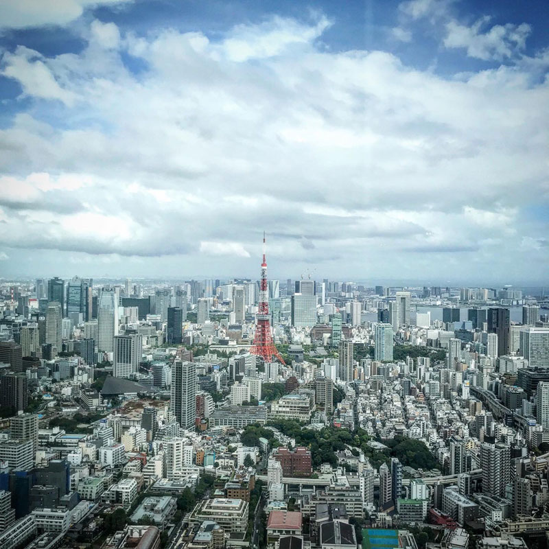 塩田千春展 を見た後、六本木ヒルズ森タワーの展望室から望む東京タワー。