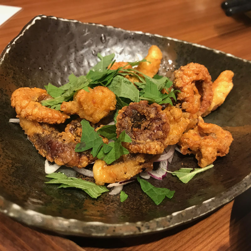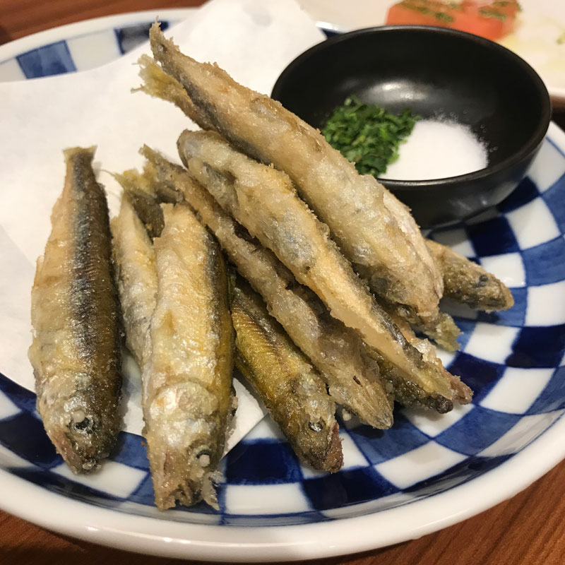 琵琶湖の稚鮎の唐揚げ、焼き鳥