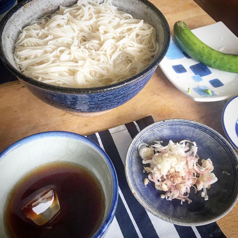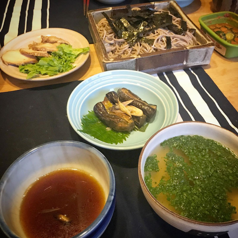 ざるそばの夕食。連日、冷たい麺しか食ってない感じ。