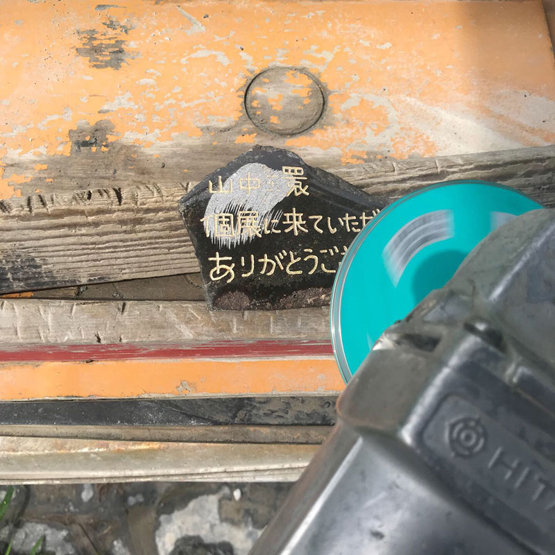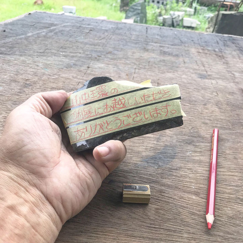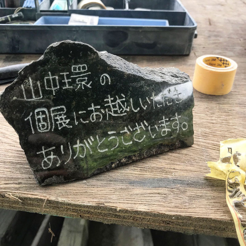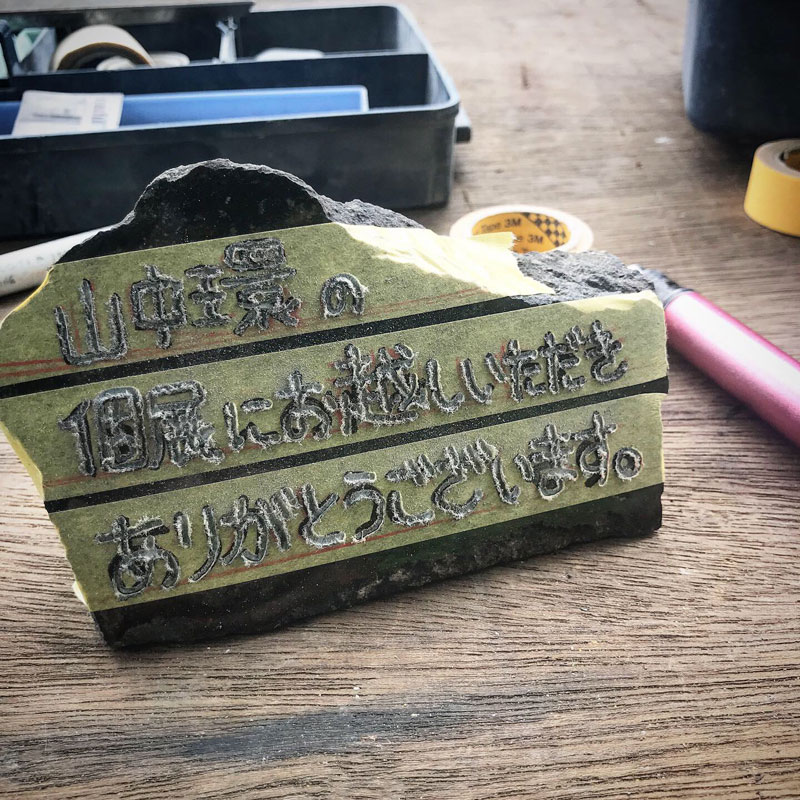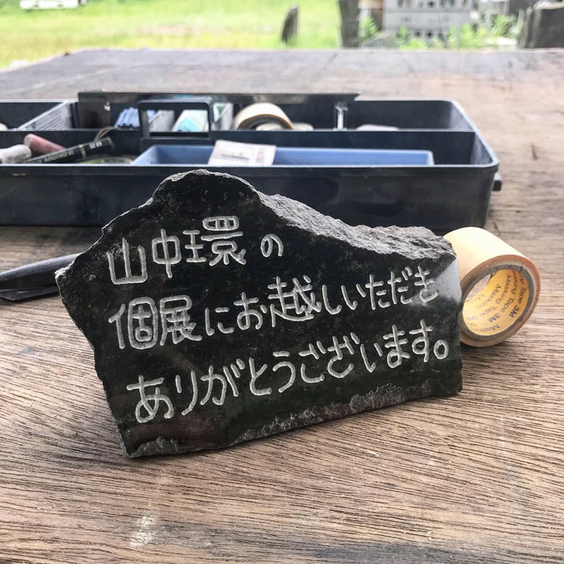個展の際に置くために先日作ったメッセージ・ストーン。まさかの漢字間違い。(”展”の字)一画足りなければ彫り足せばいいんだけど、一画多かったので削り直し、磨き直しからやり直した。その記録。