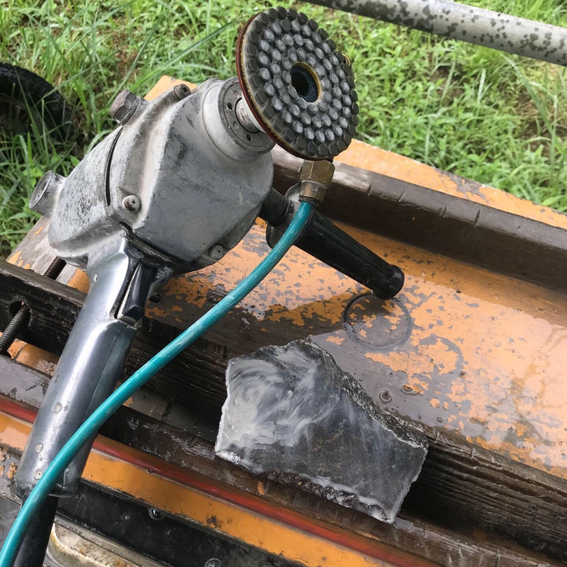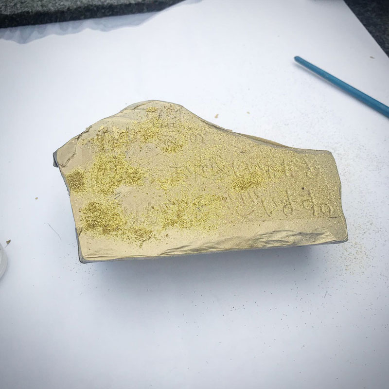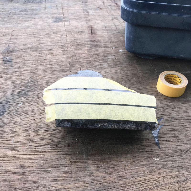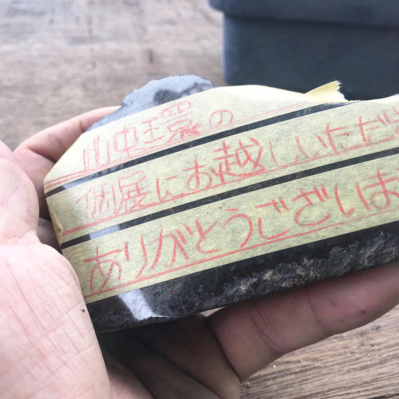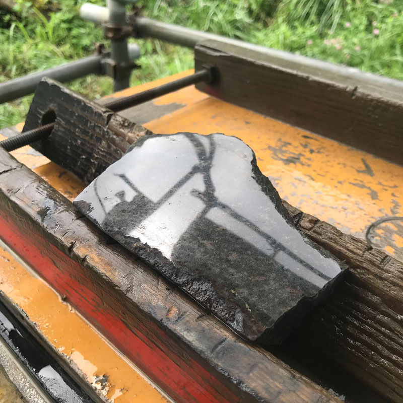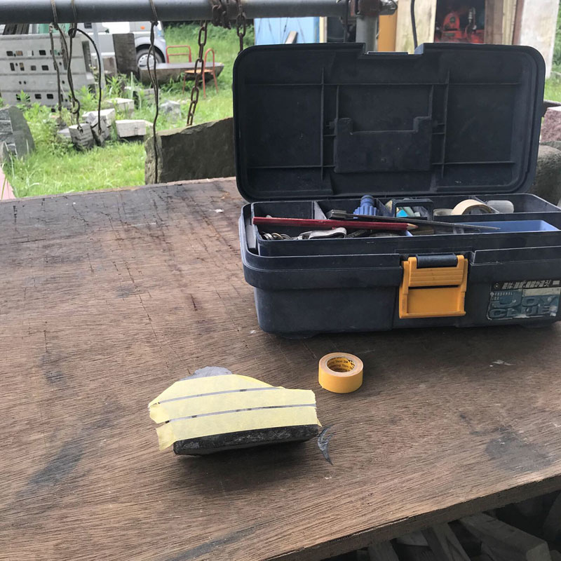 個展の際に置くために先日作ったメッセージ・ストーン。まさかの漢字間違い。(”展”の字)一画足りなければ彫り足せばいいんだけど、一画多かったので削り直し、磨き直しからやり直した。その記録。