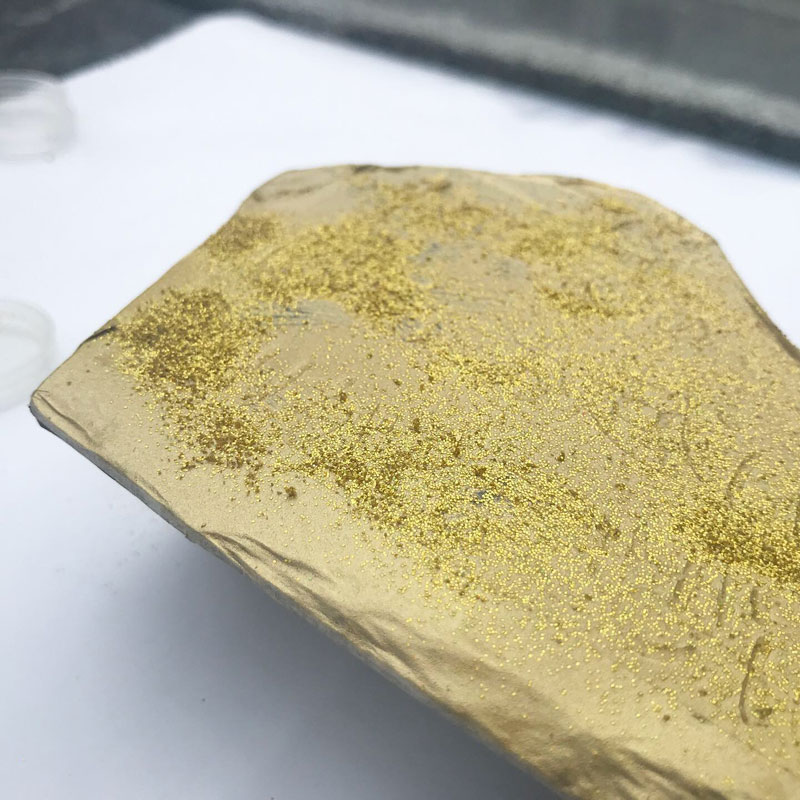 金粉が入った絵の具とかいろいろ試したけど金がキラキラするような着色はなかなかできなかった。