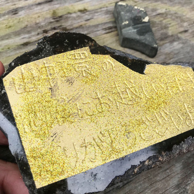 よく乾かしたら最後に砥石で、文字を再び研ぎ出す。