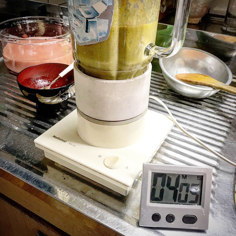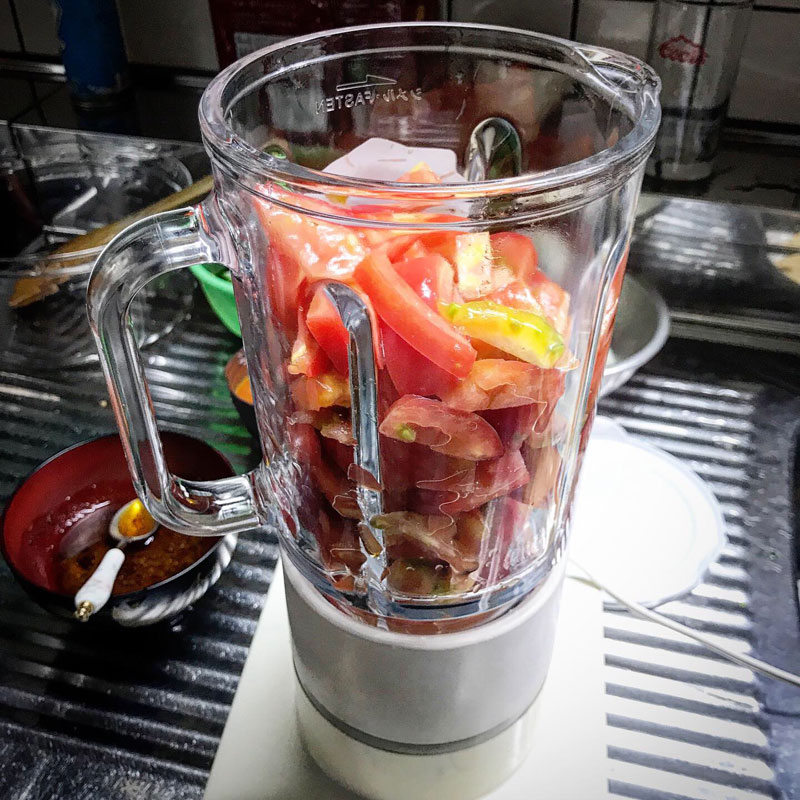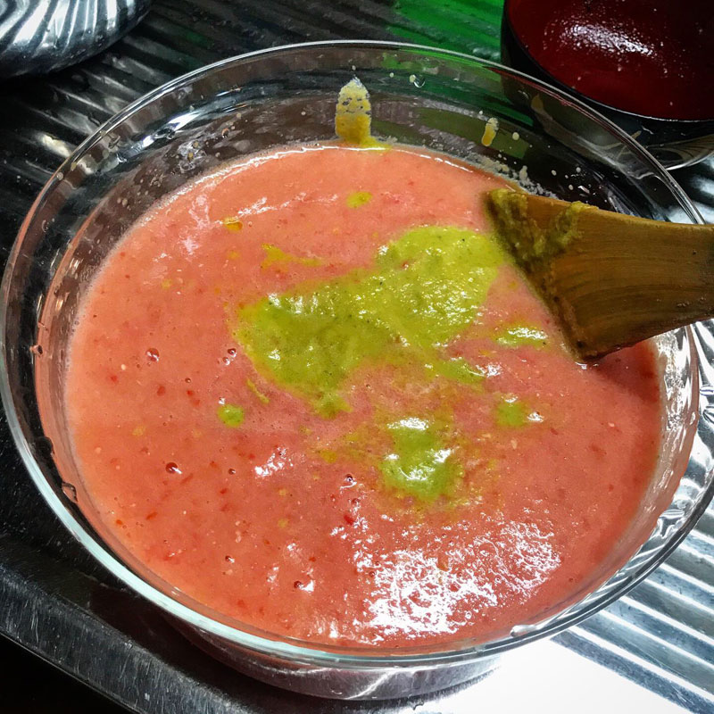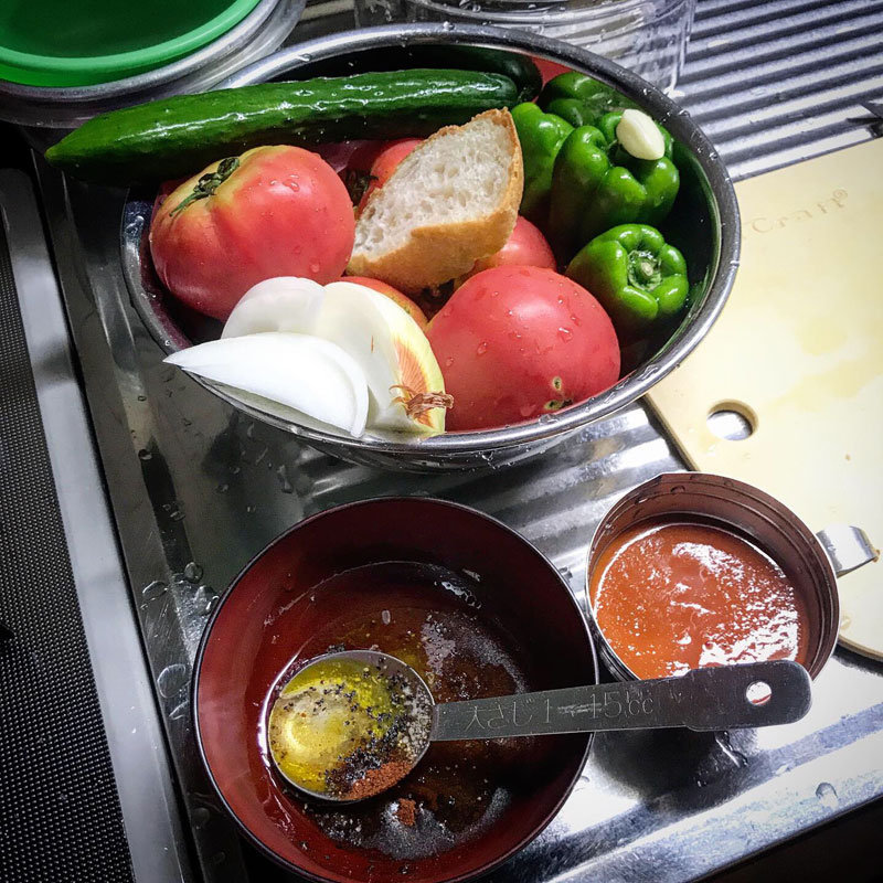 花を添えるためにガスパチョ仕込んでおく。