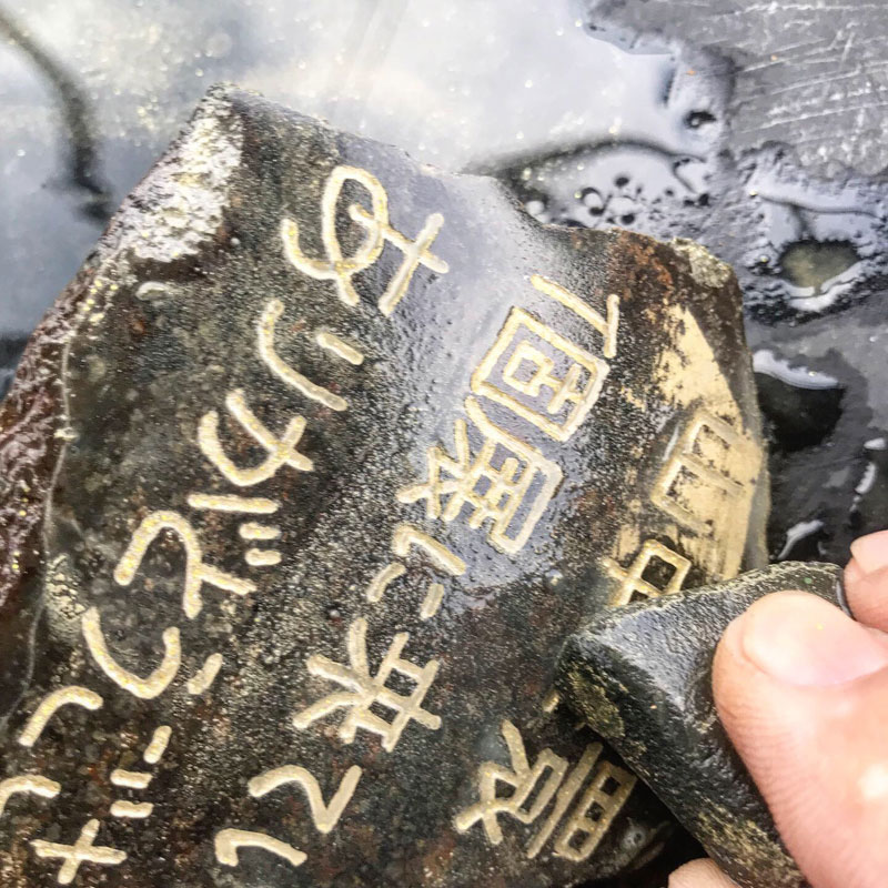 砥石で文字以外の部分についた塗料を研ぎ出して