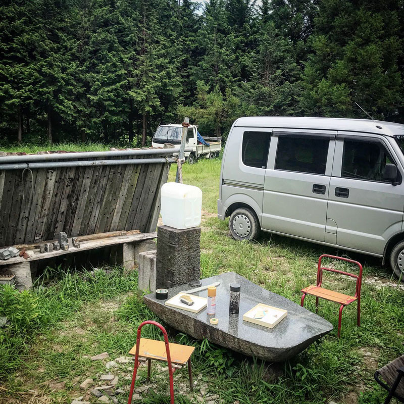 個展の際に芳名帳の前に置くメッセージ・ストーンプレートを