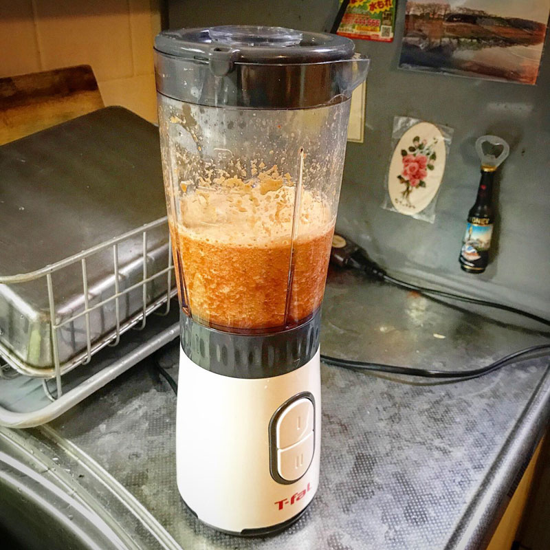 でもティファールのミキサーは分解できて洗いにくいところがないので気安く取りかかれる。前のミキサーは切れないは、一度使うと洗うのが大変で大変でそれを考えると使う気がしなくなってた。今回は6人前くらいを作ったので一度にミキサーにはかけられない。