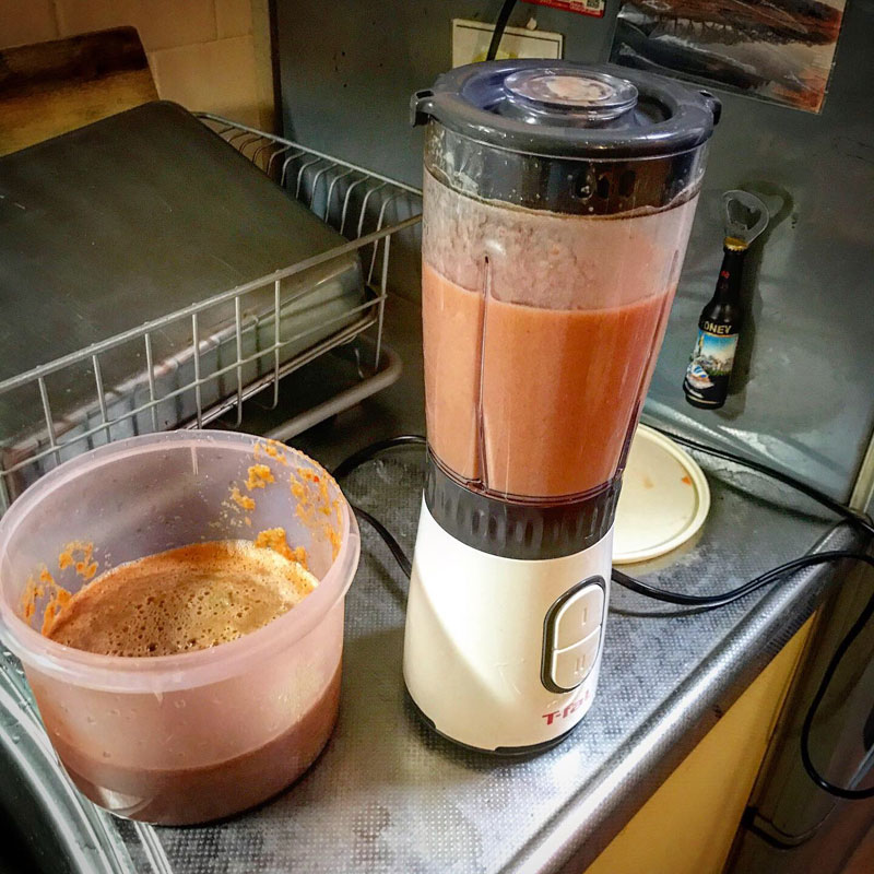 カミさんがガスパチョまた飲みたいな〜と言うので夕食後に作った。