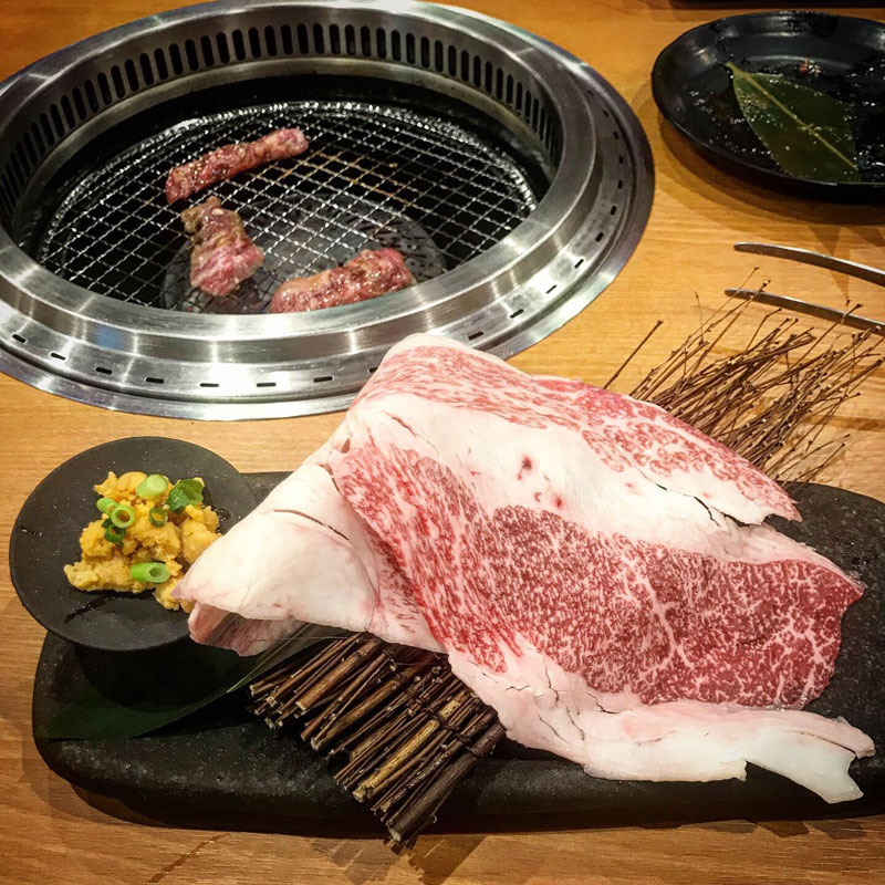 牛肉を炙ってウニを包んで食べる贅沢な一品。