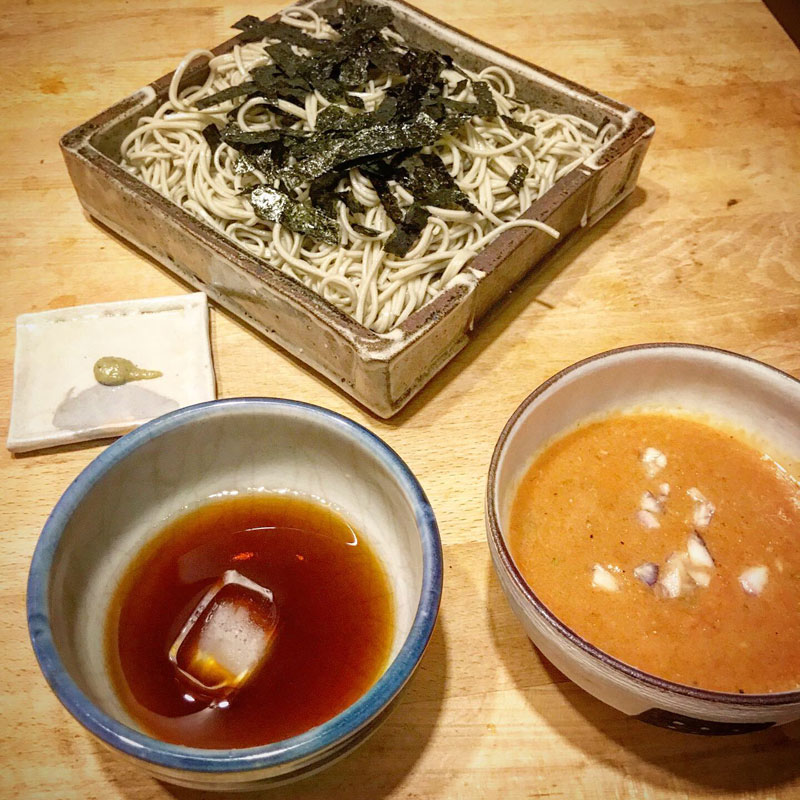 月曜日は麺曜日。ざる蕎麦。ガスパチョも。変な組み合わせだけど作る時にミキサーだけで火を入れてないから冷蔵庫で冷やしてもこの陽気だから早めに食べ切る。