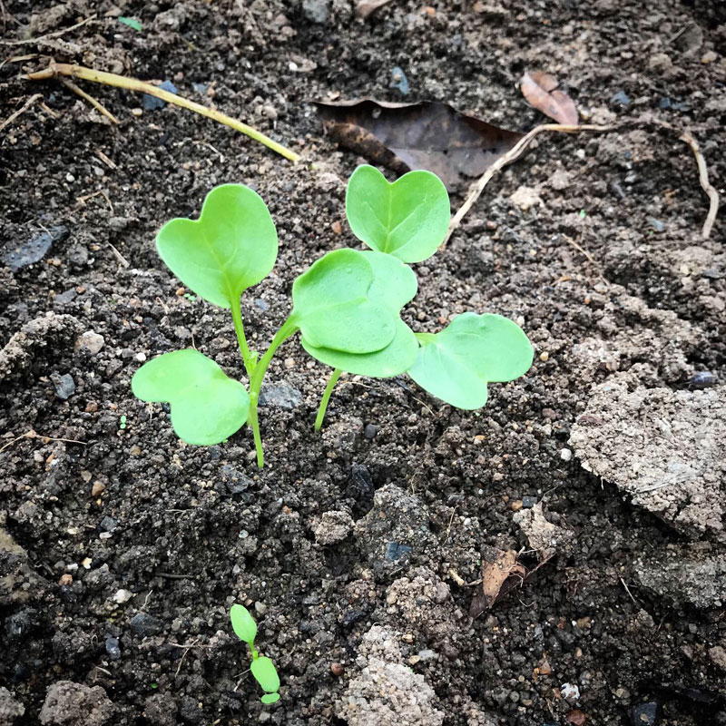大根は間引きながら畑でそのまま食べている。カイワレ大根の味で(当たり前だ!)美味しい・笑