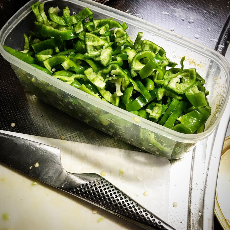 大きめのタッパーにひたすら細切りにしたピーマン入れて満タンになったら2分くらいレンジでチン。