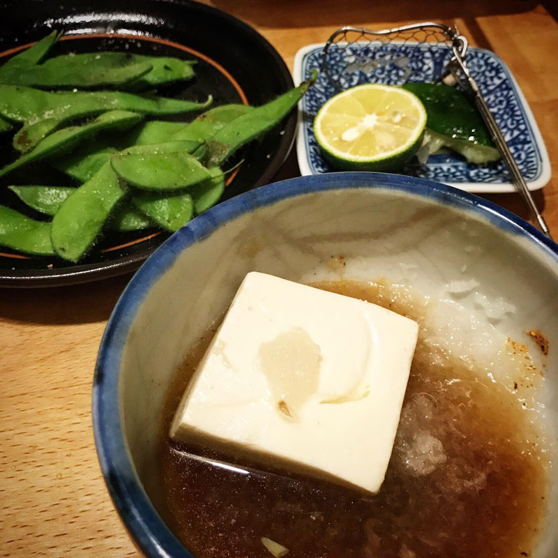 ポン酢には大根おろしと一味、仕上げに水彩画家の保科さんにいただいたスダチを絞ったらこれも美味しすぎ。畑の秘伝豆。まだ大きくふくれてないけど若くて甘い、甘い。大工の棟梁の奥様にいただいたスーパードライで。