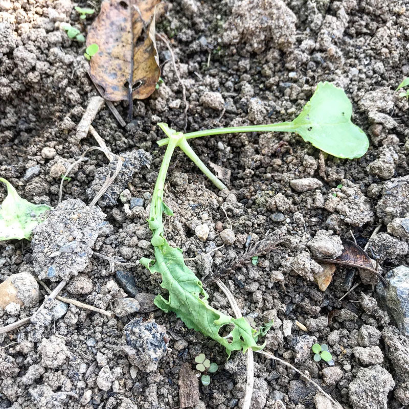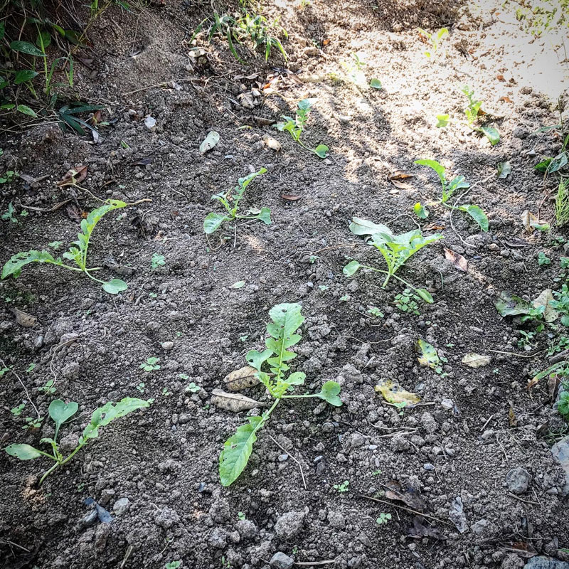 コールラビの苗育ててたんだけど、今朝なくなってた。食べられた!毎日、朝昼晩に見てるから昨日の晩にはあったんだよ!美味しいんだろうなあ、苗も畑のも食べられまくり。