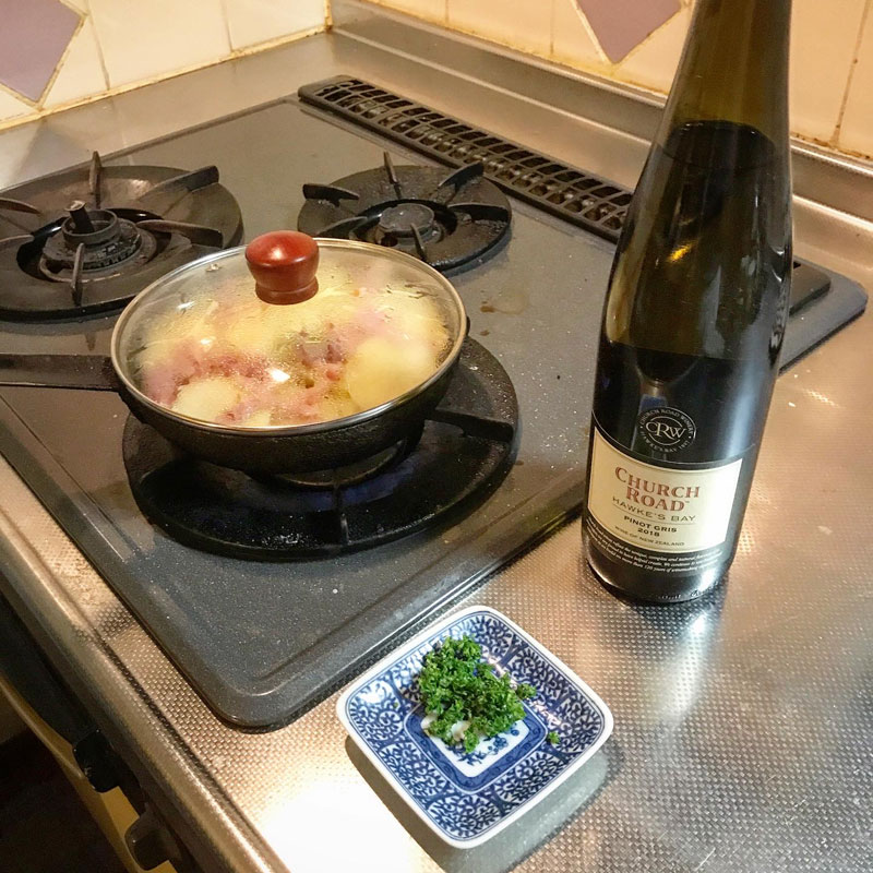 その決め手はじゃがいもと塩と白ワイン。結局、素材。ちょっともったいないけど、今ニュージーランドにいる姪っ子がワインセラーでテイスティングして選んでくれた白ワインの栓開けた。大さじ二杯のために。