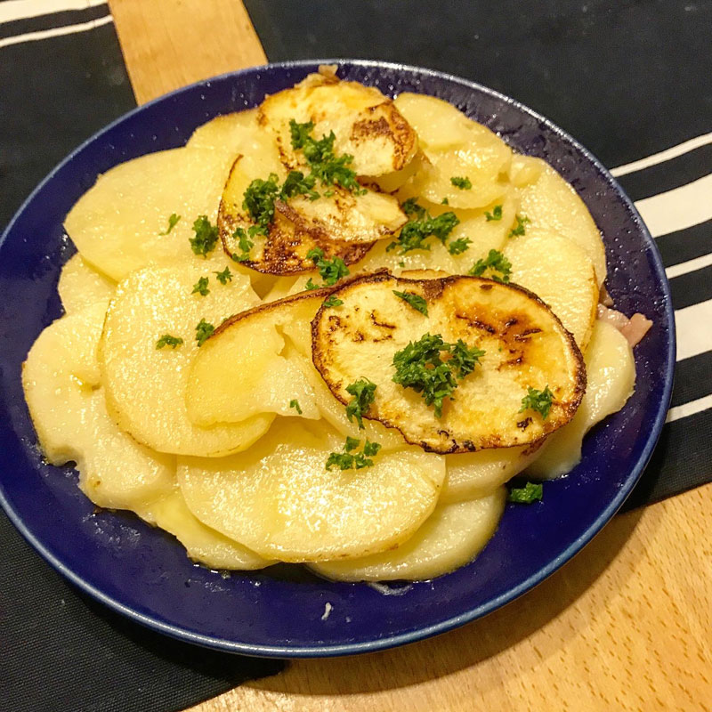 スペインの家庭料理「酔っ払いのじゃがいも」作った。うちには近所の方々にいただいたじゃがいもが山の様にある。